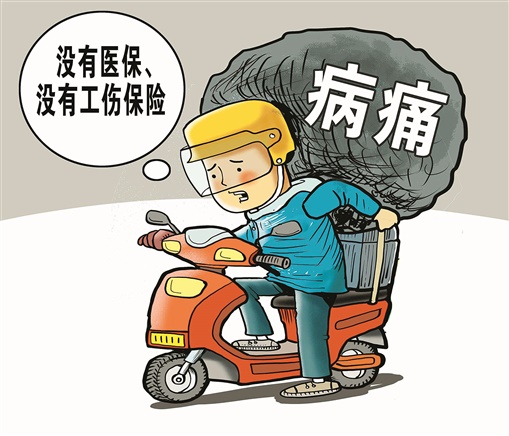 网购、外卖等平台经济兴起,带动上千万人就业,但这些风里来雨里去的新业态劳动者,受工作环境影响,却没有医疗、工伤保险保障。这其中既有体制机制方面的问题,也存在用工企业或平台对劳动者权益不重视的因素。