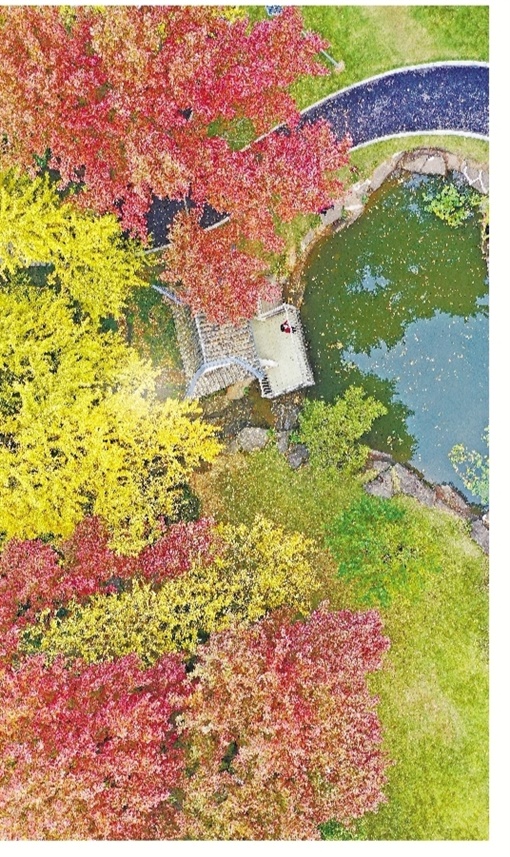 11月17日,湖南烈士公园一角,红叶、黄叶点缀其中,宛如一幅绚丽多彩的油画,美不胜收。