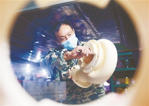 11月17日,嘉禾县经济开发区,飞恒铸造有限公司员工在加紧生产配件磨具。近期,该经济开发区全力冲刺四季度,各企业铆足干劲忙生产、赶订单,车间厂房内呈现一派火热生产景象。黄春涛 摄