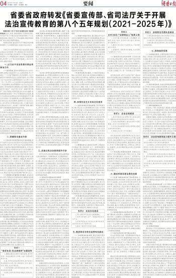 省委省政府转发《省委宣传部、省司法厅关于开展法治宣传教育的第八个五年规划(2021-2025年)》