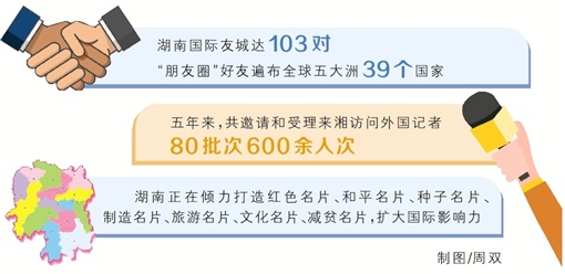 国际友城达103对,湖南的“朋友圈”好友遍布全球五大洲39个国家;