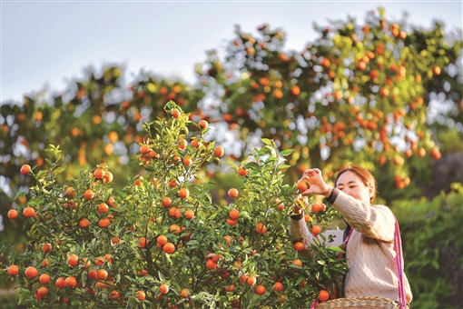 11月22日 ,浏阳市关口街道溪江村,红美人柑橘丰收在即,橙红色的果子挂满了枝头。该村种植红美人柑橘200余亩,年增收可达100多万元。红美人柑橘口感细嫩糖度高,深受消费者喜爱。