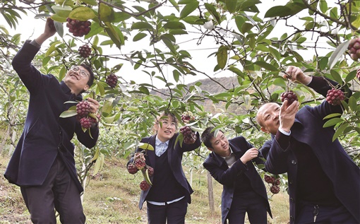 11月24日,通道侗族自治县独坡镇虾团村,当地农商银行的志愿者在帮助种植户采摘“黑老虎”果实。近年来,该县农商银行以“立足金融,援手公益”志愿服务活动为载体,综合运用“福祥惠农贷、白名单快贷”等惠农政策,积极扶持本地特色果业发展,助力乡村振兴。