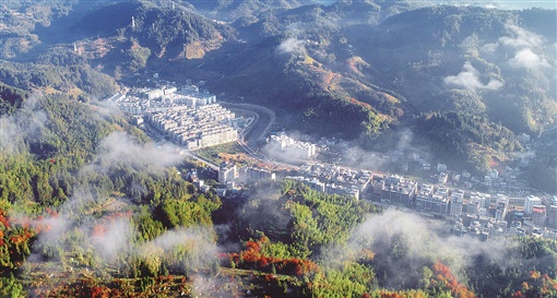 11月24日,桂东县沤江镇沤菜新村,好一幅生态美丽画卷。该村为安置沤菜库区移民而兴建,新村群山环绕,沤江穿村而过,民房整齐、漂亮,安置区内还同步建设了沤菜新村扶贫工厂、超市、农贸市场、学校、幼儿园等。 邓仁湘 摄