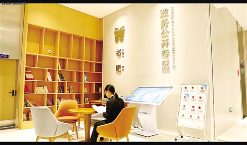 正在等号的市民田瑞瑞正在阅读《沈从文小说》。说起在这里办事的感受,田瑞瑞微笑着说:“第一次来这里办业务,没想到政务中心还配有‘读书吧’。大楼新,环境和服务也温馨。办事挺方便的,不懂的地方有工作人员解答指路。”