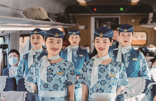 11月26日,即将开行的中老铁路的列车员制服“丝路花语”首次亮相。中老铁路全长1000多公里,北起云南省昆明市,南至老挝首都万象,是中国“一带一路”倡议与老挝“变陆锁国为陆联国”战略对接项目。新华社发