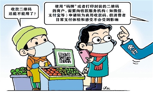 人民银行有关人士给记者打了个比方:如果消费者在早点摊购买煎饼果子习惯用手机支付,仍然可以用扫码等方式付款,没有任何变化。如果卖菜的商贩此前就已经使用经营收款码收款,也不受任何影响。
