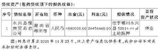 中国东方资产管理股份有限公司湖南省分公司(以下简称“我分公司”)拟处置以下资产,特发布此公告。