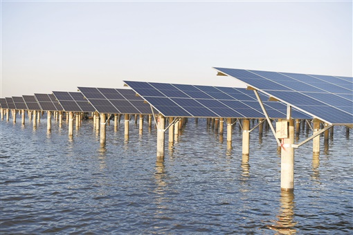 11月30日,安徽省合肥市肥东县古城镇蒋集水库“渔光互补”光伏电站一期正式并网发电。该光伏电站利用蒋集水库1000多亩水面安装建设,装机容量50兆瓦。作为光伏电站的“主角”之一,光伏板历经生产制造、运输安装等环节,最终并网发电,在减少碳排放、守护碧水蓝天的发展潮流中发挥重要作用。