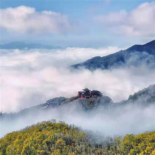 深秋以独有的魅力渲染着色彩斑斓的大熊山,金黄淌满山的每个枝叶。
