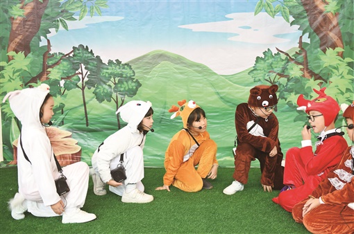 12月9日,长沙市天心区湘府英才小学,学生穿着不同动物角色的服装表演。该校响应国家“双减”政策,充分挖掘校园特色资源,基于国家课程打造适合学生发展的跨学科综合课程,促进学生全面发展。