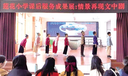 在莲花小学,把加强五项管理作为小切口,促进学生全面发展。学校课后服务开设了羽毛球、书法、版画、戏曲、主持人、科技、器乐等20多个兴趣班,满足学生的多元需求。