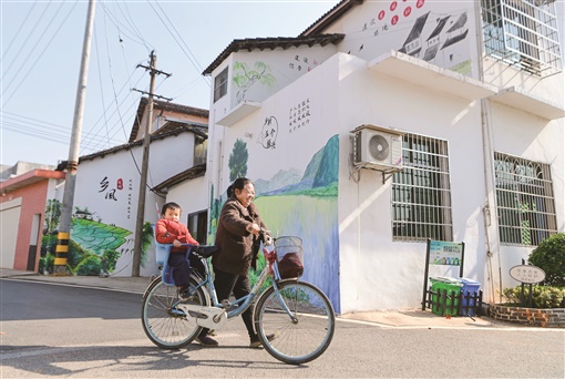 12月22日,浏阳市金刚镇丹桂村青山屋场内,村民推着自行车感受美丽屋场。今年,浏阳市把美丽宜居村庄建设作为乡村振兴的重要载体和有力抓手,实施“十百千万”工程,打造美丽宜居村庄建设“浏阳样板”。彭红霞 摄