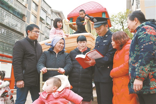 12月30日,通道侗族自治县双江镇金水岸小区,县公安局法制民警为居民讲解《民法典》。近几年来,该局民警主动进小区、村寨、学校,为群众提供法律咨询、援助等服务,开展普法教育。