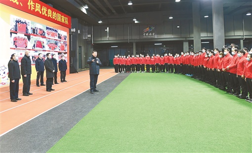 1月4日,习近平在中共中央政治局委员、北京市委书记蔡奇和市长陈吉宁陪同下,深入体育场馆、媒体中心、训练基地等,实地了解筹办备赛情况。