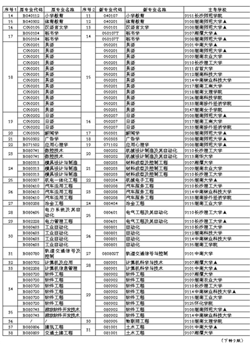湖南省高等教育自学考试开考专业(本科层次)