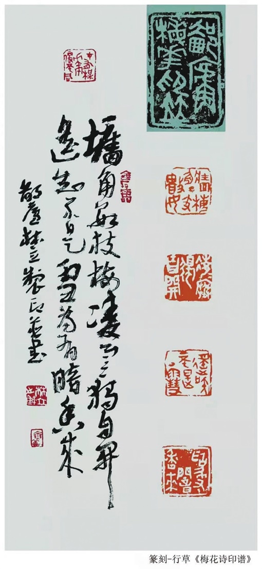 走到大门前,高声喊叫,盼望与林立先生煮水烹茶,对雪话梅。院子里静悄悄,无人答应。冒雪访梅,遇梅而不遇先生,实为憾事。伫立门前,望着偏居一隅的小楼,感慨良多。先生初中学历,自学成才,在书画、金石、美术设计等领域,都有建树。先生并不恃才傲物,仗“艺”狂妄,谦称“游艺草根”,朴实、低调、绝不张扬,不媚俗更不媚权,无傲气却有傲骨,追求艺术境界的自由和灵魂的栖居。斋名“瓦砚”,别号“阅薇居士”,浓缩了先生视名利为浮云,为艺术而活,艺术高于一切的人生态度。“瓦砚”,砚之最贱者。宋代欧阳修有诗句:“砖瓦贱微物,得厕笔墨间。於物用有宜,不计丑与妍。”“薇”,菜之最微者。王安石《字说》云∶“微贱所食,因谓之薇。故《诗》以‘采薇赋戍役’。”