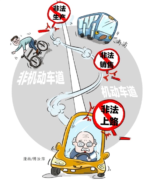 不合规的产品,应严格禁止上路。希望政府相关部门能够加强监管,依法依规坚决取缔和淘汰不符合要求的低速电动车生产企业和产品,用重拳打击非法的老年代步车。同时,为了满足老年人正当的代步需求,我们的社会应尽可能地多为老年人提供便利又合规的交通工具,让老年人也能轻松出行。