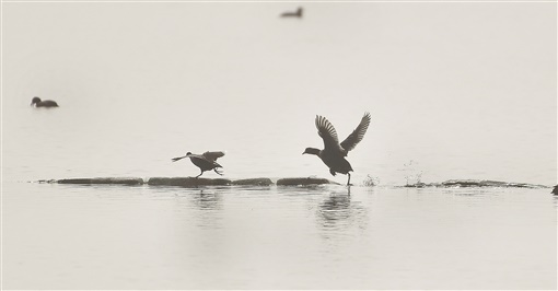 1月11日,湖南松雅湖国家湿地公园迎来候鸟迁徙高峰,鸟儿在此觅食,多为白骨顶和红骨顶。随着湿地环境不断改善,每年回归的候鸟逐渐增多,这里成为了城市中的野生动物乐园。湖南日报全媒体记者 童迪 张京明 摄影报道