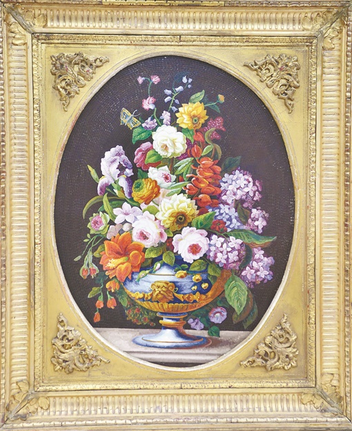 “区分绘画和微型马赛克一般要借助放大镜。”在他的指点下,记者才借助反光,隐约在黑色的背景上看到嵌片形成的纹路,而色彩浓郁的花卉部分完全看不出来。