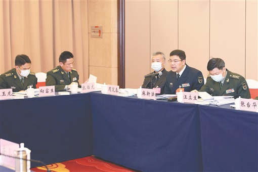 1月17日,解放军和武警部队代表团代表在讨论政府工作报告。