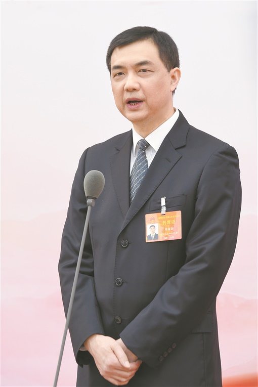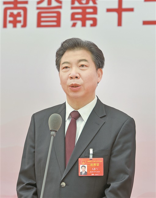 17日上午,省十三届人大五次会议开幕会结束后,省发改委主任周海兵、省工信厅厅长毛腾飞、省财政厅厅长石建辉、省商务厅厅长沈裕谋来到省十三届人大五次会议第一场“厅长通道”,接受媒体采访。4位省直部门主要负责人结合自身工作领域,围绕湖南全面落实“三高四新”战略定位和使命任务取得的积极成效及社会热点关切话题,回答记者提问。