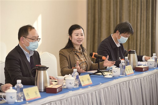 1月18日,粟显波委员(中)在小组会议建议,加大湘菜和湘瓷的文化融合力度。