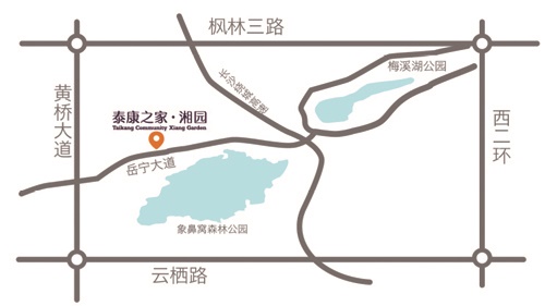 泰康之家·湘园大型CCRC养老社区提供从独立生活、协助生活、专业护理到记忆照护的一站式服务,为长辈们提供不同身体状态下的适宜服务。泰康之家·湘园位于梅溪湖国际新城二期核心地段,对面是象鼻窝森林公园,门口即地铁6号线象鼻窝站,沿地铁6号线途经湘雅附一、附二、附三,到达黄花国际机场,康养就医条件便利。湘园北邻2000亩市政绿地公园、8公里长龙王港生态景观河,周边购物商场、娱乐、酒店、高端住宅、综合配套完善,30分钟可到城市核心,地理位置及生态环境得天独厚。