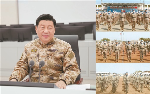 随后,习近平同中部战区海外维和分队进行视频通话。来自维和步兵营、工兵分队、医疗分队、直升机分队的同志们整齐列队,依次向习近平报告。习近平向他们,并向我军正在海外执行任务的全体官兵表示慰问。习近平强调,要忠实履行维和使命,为维护世界和平贡献更多中国力量,向世界展示中国军队良好形象。维和任务区环境复杂,要注意加强安全防范,搞好疫情防控。