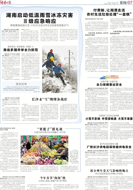 湖南启动低温雨雪冰冻灾害Ⅲ级应急响应