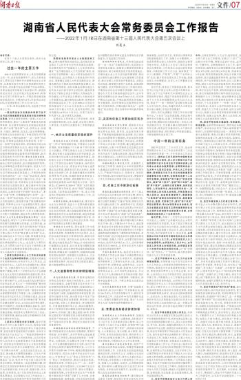 湖南省人民代表大会常务委员会工作报告