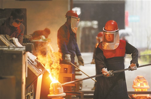 2月8日,资兴市铧钢精密制造有限公司,工人在赶制产品。该公司今年已接到外贸订单1亿多元,工期排到8月底,生产的不锈钢铸造件等产品远销欧美等地,广泛用于世界知名品牌水泵、阀门、汽车、船舶、飞机等制造领域。李科 摄