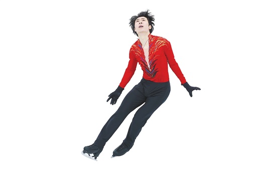 身穿红色战袍的中国选手金博洋在洁白的冰面上,完成一长串冰面旋转动作后,稳稳停住。他如同一团炙热的火焰,燃烧着自我。他激动地绕全场谢幕,仿佛在放飞自我!