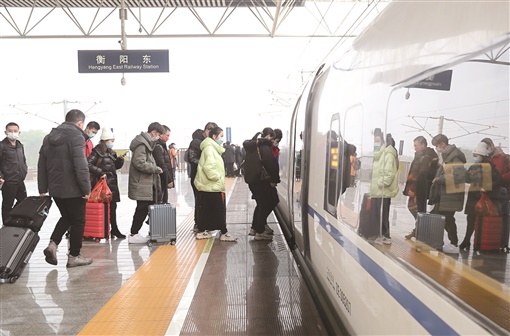 2月16日,高铁衡阳东站,旅客排队有序验票进站。元宵节过后,返校学生流和返岗务工流交织,全国各地迎来了节后客流高峰,铁路部门提前部署运力,确保返程客流安全平稳度峰。