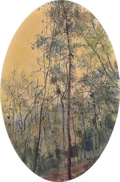 这两个特征自有它的来路,或曰一种有意识的选择与趋向。风景写生贵在写生,油画写生的现场感与直接性更是作品生命力与生机感的体现。在大自然面前的找寻和动笔,为的是获得自然景物景象与自己心灵怦然相触的契机,从心与物游通达心与物的两相冥契。季节变迁带来的大地苏醒与沉睡,草木葱茏与凋敝,天色阳舒与阴惨,都是风景最美也最有内涵的模样。在中国古代绘画中,风景(山水)的“四时”始终是一种令人追寻的意象,既与生命悸动相对应,又与情感相依藉,一如陆机所说:“遵四时以叹逝,瞻万物而思纷。悲落叶于劲秋,喜柔条于芳春”;也如刘勰所写:“春秋代序,阴阳惨舒,物色之动,心亦摇焉”;还如钟嵘所言:“四侯之感诸诗者也”。礼攸对风景“四时”的敏感,正在于他的敏感心灵和内倾性情,也是他与景对话、与物相惜的情感所至。此外,在他的艺术心理上,也多少受到楚文化的浸染。湘楚之地,自古以来崇尚自然、歌咏香草,于自然景色中生发生命的咏叹,将自我心理投射于嘉卉草木,尤其还带几分神秘奇诡的气质。礼攸的“四时”风景油画便是在自然景象更替变化中缔结出时空的永恒,体现了“怀远”与“观近”的结合。