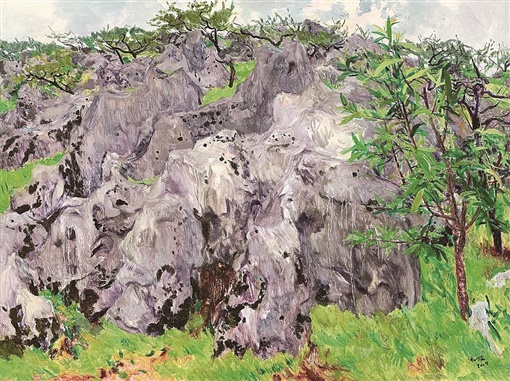 心物相合的意境需要油画语言的支撑。礼攸丰厚而综合的学养在他的绘画语言中充分体现出来,他的色彩与笔调既得益于他体悟传统的积淀,也源于他对油画本体表现性的不倦追求。在作品中,他的画面结构严整而笔触放松,于具象构形中带写意造型,笔触变化粗中见细,色块叠印表现出丰富的层次感;他在色彩运用上擅用补色,强烈的视觉效果下糅化出物象的生命质感,产生空蒙苍润的灵动景观;最为重要的是,他运用油画媒介形成“书写性”的笔调笔意,在造型、表现和意境营造三者间建构起直觉上的共感,体现出中国艺术抽象表达的精神力量,在“写意油画”的共性追求中彰显出独特面貌。