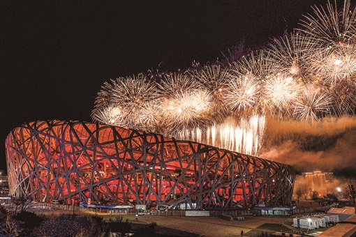 环保焰火燃放也是一大亮点。常宇介绍,本届冬奥会开闭幕式仅在重要节点燃放环保烟花。“比如,雪花火炬熄灭后,‘双线五环’焰火再次出现,与2008年奥运会的特效五环相互呼应。配合场内演出,‘鸟巢’上空用特效焰火打出‘天下一家’和‘ONE WORLD ONE FAMILY’中英文字样,随后高低空焰火将现场推向高潮,伴随场内表演的尾声,空中出现一个巨大焰火光环,展现人类命运共同体的主题和更团结的奥运精神,同时也象征着本届冬奥会的圆满成功。”