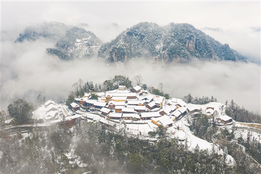 2月22日,花垣县双龙镇十八洞村,雪后的苗寨银装素裹,美如画卷。张术杰 摄