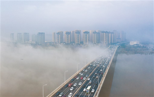 2月24日早晨,长沙出现平流雾美景。当天,雨后放晴的长沙雾气笼罩,高楼仿佛置身云端,在朝阳的映衬下,蔚为壮观。