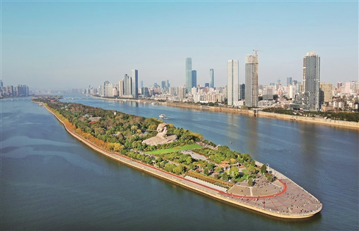 3月初的长沙,一扫持续数周的雨雪天气,露出久违的阳光,来到橘子洲景区的游客发现又多了一个网红打卡景点。