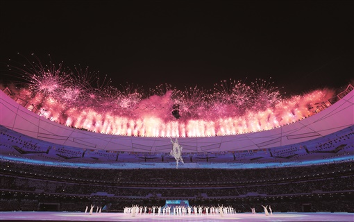 当晚,开幕式进入最后部分——主火炬传递环节,北京冬残奥会选手、中国残奥高山滑雪运动员刘思彤第一棒出场,点燃位于第二棒文晓燕手中的火炬。在深蓝夜空雪花飘舞的地面背景衬托下,文晓燕高擎火炬,向场内观众挥手致意,跑向第三棒……8名主火炬手接力传递下,由最后一棒盲人运动员李端作为插火炬手,将火炬插入雪花火炬台,雪花火炬台缓缓上升,此时,绚烂焰火腾空而起,国家体育场顿时化为欢乐的海洋,将现场气氛推向最高潮。
