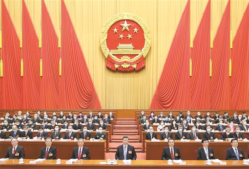 习近平汪洋王沪宁赵乐际韩正王岐山等在主席台就座 李克强作政府工作报告 栗战书主持大会 听取关于地方组织法修正草案、关于十四届全国人大代表名额和选举问题的决定草案的说明等