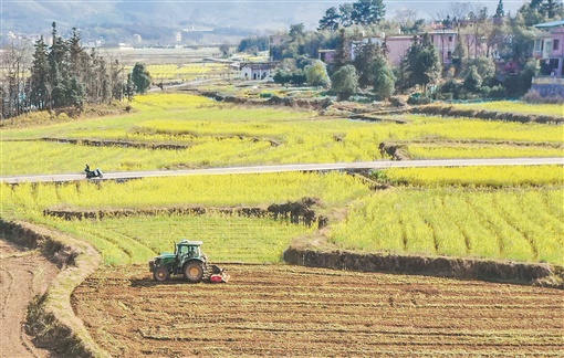 3月10日,蓝山县塔峰镇六七甲村,村民驾驶农机在翻耕土地。春耕农忙时节,当地农民抢抓农时开展春耕生产,田间地头机声隆隆,一派人勤春早的忙碌景象。彭华 摄