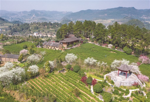 3月15日,古丈县红石林镇青竹山茶园,青青茶树与多彩春花辉映成景,格外美丽。张术杰 摄