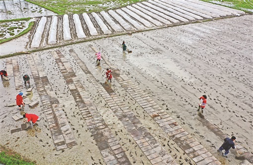 ▲3月17日,桃江县桃花江镇花桥村,农民抢抓农时育秧。