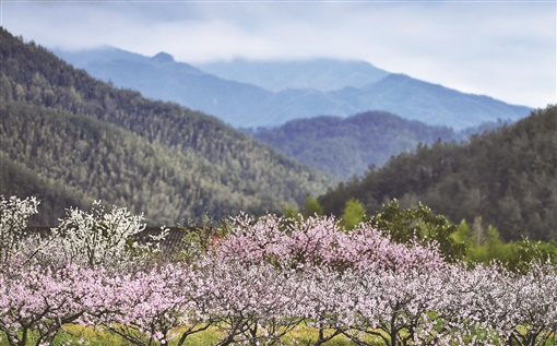 3月18日,浏阳市大围山镇楚东村上万亩桃花竞相绽放,吸引游客前往赏花。