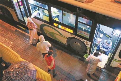 3月24日晚,长沙市开福区秀峰街道戴家河社区,工作人员在为社区居民进行核酸采样。近日,为方便居民,该社区申请流动核酸采样点开展夜间采样。 湖南日报全媒体记者 傅聪 摄