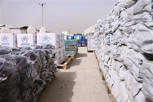 中国南南合作援助基金同联合国难民署合作援助阿富汗人道主义物资交接仪式,3月27日在阿富汗首都喀布尔举行。
