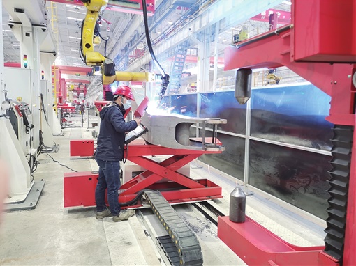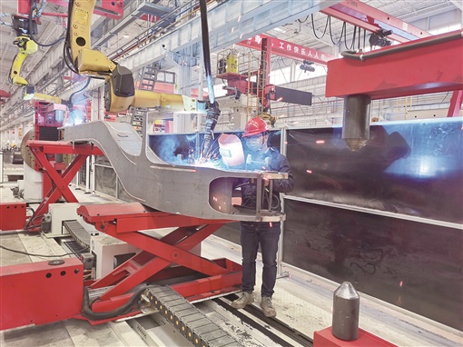 “项目按照‘灯塔工厂’标准,建设智能车间、数字工厂,工艺先进、产线智能,产品囊括工程机械用高强钢、耐磨钢等所有高端品种,可全面代替进口。”车间主任聂汗春介绍,高强钢的屈服强度可达1400MPa,而厚度仅4毫米,用于起重机吊臂、高空作业车伸缩臂等工程机械制造,每平方厘米可承重14吨。