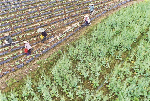 3月31日,道县梅花镇棠下村,村民在田地里劳作。春分过后,气温回升,该县各地农民抢抓农时春耕春播春管,田间地头一派繁忙景象。何红福 李昊璋 摄影报道